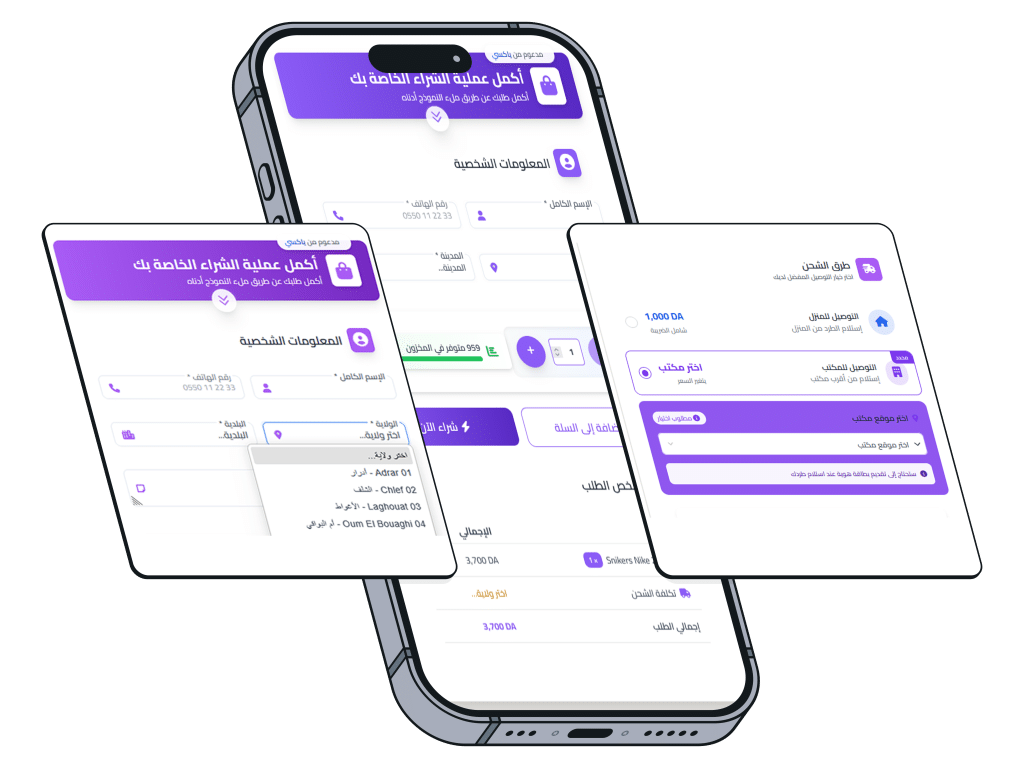 بتبسيط عملية الطلب و الدفع في صفحة المنتج بشكل سهل و آمن مع عرض تكاليف الشحن مسبقاً وإلغاء الخطوات المتعددة. وتحسين تجربة المستخدم، مما يزيد من نسبة إكمال الطلبات.